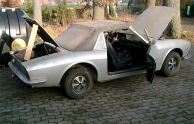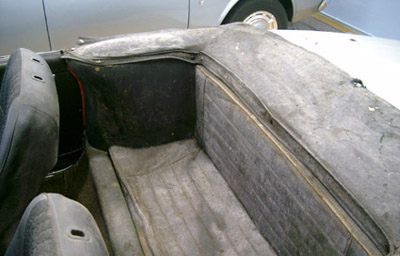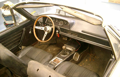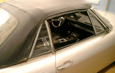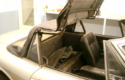 gegenüber dem Coupe geänderte Armaturenbrett erhalten geblieben. Das Verdeckgestänge ist gebrochen, der Bezug taugt nicht mal als Muster. Dann noch eine schlechte Nachricht: die rechte Kurbelscheibe