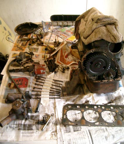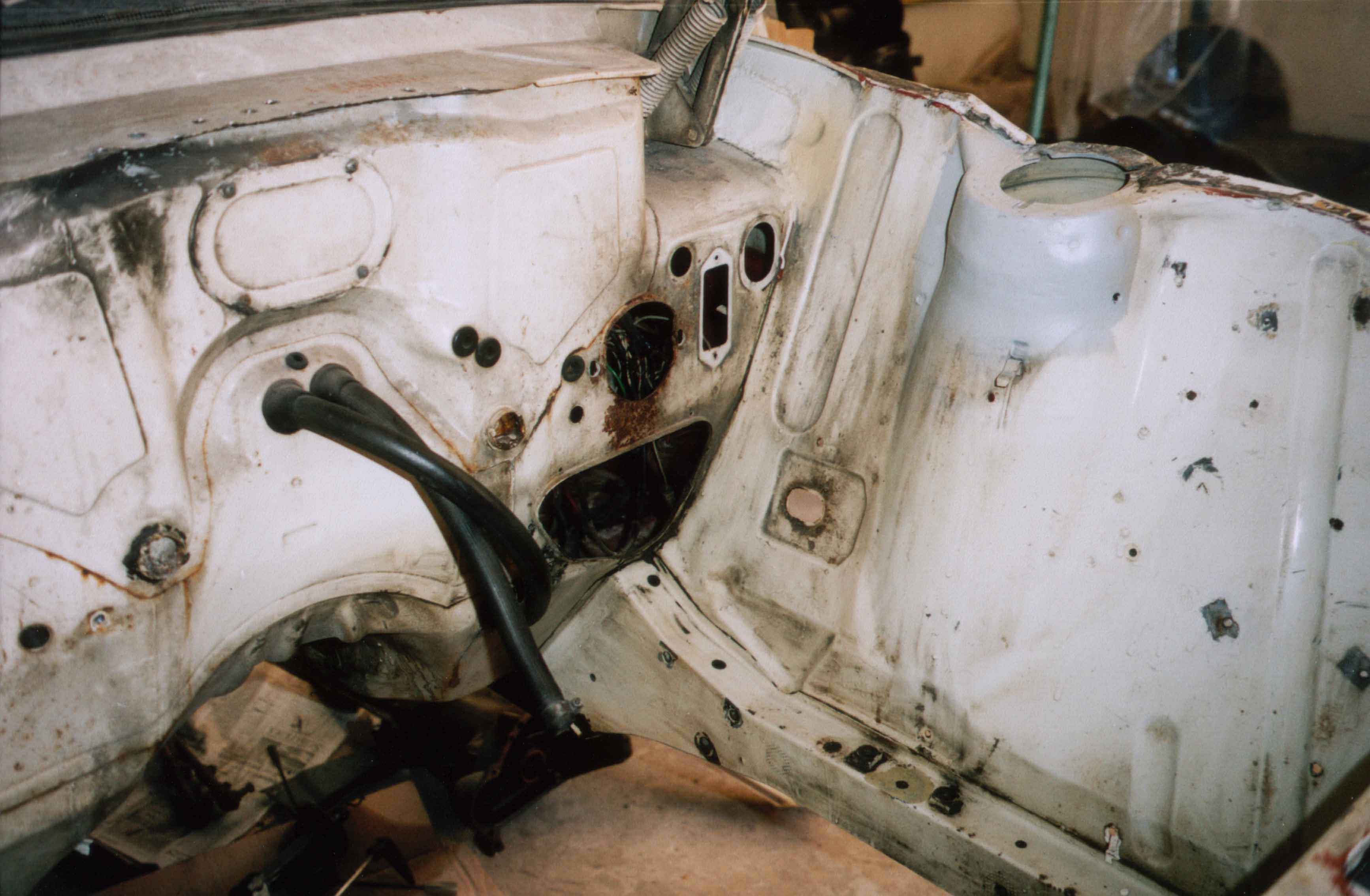 Ja, so sah der Motorraum mal aus. Selbst die Federbeinstrebe war draussen, um auch wirklich allen Rost zu beseitigen