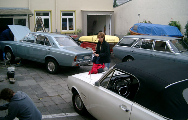 Besucher sind nach Ankündigung willkommen. Aber bitte beachten: wir sind kein Museum und kein Händler. Daher können wir auch keine 7/24-Öffnungszeiten oder beliebig beliebig viel Zeit am Wochenende aufbringen. Es stehen immer nur ein paar Autos in unserer kleinen Werkstatt, so dass wir Wünsche wie “den P3 Turnier würde ich aber auch gerne noch sehen” nicht erfüllen können. Wer aber einfach bei einer Tasse Kaffe über alte Ford mit uns plaudern mag, kann sich gerne bei uns melden.